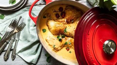 Geschmortes Huhn in Käse-Sauce